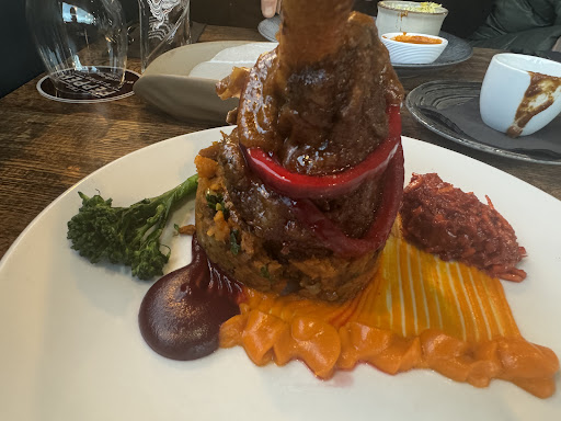 The service was superb our main man was Shijo who gave me my Cobra pint and normally its always plonked in front of the male in the party. I ordered pea paneer parcels as a starter so unusual and nice enough. The crispy chicken starter was incredible. My mains were the raw mango and tiger prawn with coriander rice cooked to perfection and piping hot š„. Excellent. I had the tiramasu with the gulab jaman for pudding loved the indian/ Italian combo it worked so well.