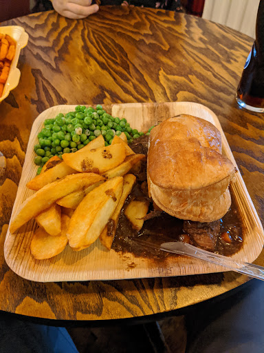 Tried here again for lunch after a lowsey new years day visit 2 years ago hoping things may have improved. So, only me and my wife & daughter in the pub, nice young lady showed us to a table in a rather run down conservatory. Another pleasant young lass took our orders which we made from quite a poor menu. Our drinks arrived 5 minutes apart, and then another 20/25 minutes for the food (good for a full decent meal).... But this wasn't! I ordered beef curry, my wife the chicken mushroom pie, daughter had a pizza. 1st,beef curry, this was served on a paper plate as my wife's meal was, presumably to save on washing up? The pizza arrived in a pizza box! Beef curry for £9 consisted of around 12 chunky chips and about 2 tablespoons of curry! Wife's pie wasn't a pie, it was filling spooned onto a paper plate and a puff pastry lid sat on top with again a portion of chips. Is the basic definition of a pie not consist of pastry containing a filling topped with a lid of some kind? No veg at all either. To be fair, the flavour was OK. The pizza.... Good size, very thin, looked like a town centre Saturday night offering. For the advertised price of £9 per meal it was shocking. Even after the tax payers contribution to my bill(eat out scheme) it was still over priced fayre. I didn't mention the fact the curry should have involved rice but as last time we visited, they didn't have any! This is the last visit I'm afraid, plemty of pubs doing proper food in the area that's actually quality. So, nice staff,...... And...