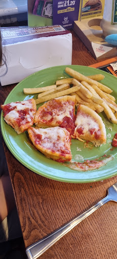 Food, Average at best with only half of us liking the food. Example the daughters chicken sandwich the bun was burnt, dirty fries had hardly any toppings, almost just fries with a side dip. Parts of order served late and other parts we had to ask for as they forgot to bring them. Tomato missing from big breakfast, onion rings missing off another plate, extra bread and butter for toast.