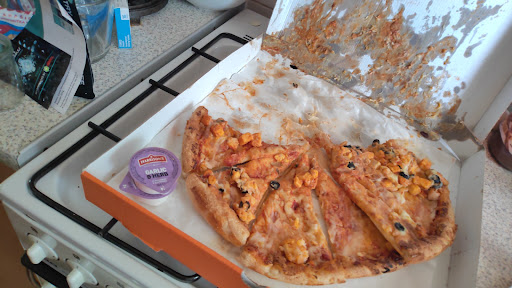I asked for plain chicken with BBQ sauce. The guys were on the phone having some funny conversations, at first they didn't even want to notice me I guess.. after I asked for chicken BBQ pizza, one of them said no we don't have.. I get out and the other one when he finished his funny conversation on the phone came out to ask me what I wanted, he said yes they do.. I shouldn't order it as for the strange behaviour, but I guess when we're very hungry and tired, we want to trust them. Unfortunately this guy is not to be trusted at all in any way!! I got some kind of marinated precooked chicken in tikka masala so much sauce it was just sliding from the dough, cheese partially mixed up with the sauce.. very oily and very painful to eat, bland tasteless, they also charged me extra for maybe olives as I couldn't have sweetcorn, but that's I find out when I looked on my bank statement.. however I was hungry, I was able to force myself to eat a some, but only to get something into my stomach and I was far to get back to give back, I have diarrhea and stomach pains so the rest going to bin.. couldn't get anything else from other place as I can't afford it.. £12 totally wasted!! Deffo needs to check your pizza...