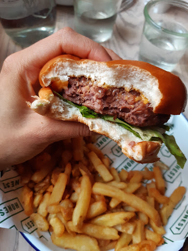 Summer 2023 - Absolutely delicious food and amazing service. Waitress was great in helping both me and my friend decide what to get. The food arrived promptly and was piping hot. All cooked to perfection. I am a sweet over savoury person, but Honest Burger holds a special place in my heard. The rosemary sea salt chips and incomparable to any other chip - they are like the best chip you have ever eaten crossed with the best roast potato you have ever eaten. I get the plant burger. which is also incredible (when using Beyond meat, this is expected!). I also switched the vegan cheese for American cheese this time (I am vegetarian, not vegan) which I think I preferred! Highly recommend Honest Burger if you want to mega level up your Burger and Fries game (ps. they also do Blue Light discounts every day...