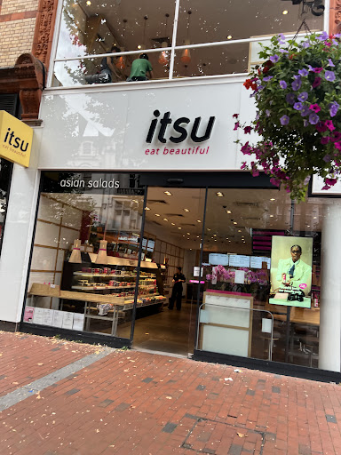 Read moreLove sushi and love this location with loads of seating inside, upstairs and downstairs. The loos are upstairs and the till receipt gives you the code for the loo door. They offer loads of sauces on the table and with the napkins. They also offer seeds to top your food as well as forks, chopsticks and soup spoons, all wooden. They have plastic cups and a drinking water tap too! The tables all have high seats with bag straps under the tables. There are usb charging points on each side too! The staff are so happy and helpful every time I go along. There is an Itsu app, if you scan when you purchase you collect butterflies, once you have 7 or 8 you get a free meal! The metal water bottles are great, the perfect size for taking shopping with you and reusable too and come ready filled so much cheaper than buying a reusable metal bottle elsewhere. I would happily go here every time I...