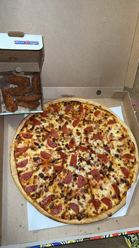 I've visited this place twice, and on both occasions, I tried their largest pizza. The gentleman at the counter is always polite, helpful, and friendly. The menu is clear and easy to navigate, allowing you to choose four toppings to create your own custom pizza. As we prefer only meat on our pizzas, this option is perfect for us. The service is impressively quick, and parking is convenient—just turn onto nearby side streets like Alpine or Francis, or the one right after the pizza shop.