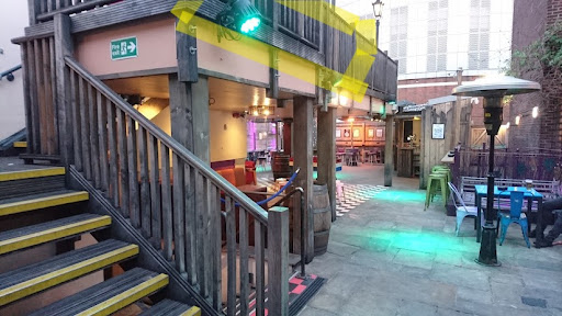 Outside area with its shisha lounge, upstairs, downstairs, dungeon dance floor etc etc make the place because unfortunately they switched beer suppliers and are left with a pretty shoddy range. Ciders and ales on handpull are good still. Some new nervous staff who aren't really improving with time. Pints of beer are poured using the 'swill it around to create foam' trick which screams of poor training. A staff member who I think supervises the bar tenders thought my £50 note (I know, I needed to spend it somewhere...) was fake and ripped it nearly in two trying to do something with the metal strip he must have read somewhere. Other staff and customers got involved and was clear no one knew what they were doing. Bit awkward and held up a very busy bar. Lady on the shisha lounge looks extremely bored and unhappy left alone. Purple Turtle should rotate staff around to keep her from nodding off.