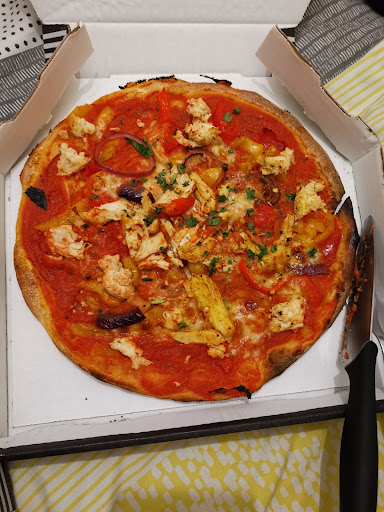 Our table was booked for 7pm and it was busy. I get that. We were seated and told it'd be an hours wait for food which we also said was fine. An hour and a half later, we were told no one had proofed the dough so we had to wait longer for them to entirely remake the dough, and their chef had stormed out. After 2 and a half hours of waiting, we were one of only 2 tables waiting to be served. We weren't offered a snack, a drink, or anything, and we even were fine with that and moved on from it. When it hit 10pm, the other table that was waiting had received their starters and even their mains and we hadn't even gotten a single starter, snack or drink, and were the very last table left in the restaurant. Our pizza finally arrived around 10:15pm, and we had asked for ours in takeaway boxes because it was extremely late. When we to home, we opened it up so see that there was absolutely no cheese on it, and the base was so thin, there basically wasn't any and it was just tomato sauce spread on a cardboard box with a pile of half cooked chicken piled in the middle. The only possibly edible part that wasn't stuck to the cardboard box was the crust that seemed to be the only dough there. Here are images that show our one decent pizza (still burnt black on the bottom) and out other "pizza". You can see in one of the pictures where we tried to slice it, and we found out we were just slicing the cardboard. After over a 3 hour wait and I receive an inedible pizza with no compensation? We were reasonable and polite about the wait, but that feels like taking the piss. I go to pizza express a lot for special meals out and I have never been so so so let down.