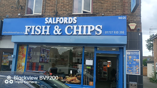 Read moreAs an American in the UK to visit my daughter's family, I wanted to visit a neighborhood family-run fish and chips shop, and multiple people recommended Salfords. I'm so glad they did. The portions were large, the quality of the fish excellent, the batter crunchy but tender. We ordered both cod and haddock. Also, the scampi (what is called scampi in the UK is NOT what is scampi in the US----these are delicious breaded langostinos) and fried haloumi cheese were delicious. The couple who run Salfords are very helpful and friendly, and we liked the food so much, we went back again a second time. Very highly recommended if you want the classic British fish and chips experience. Looking forward to going back next trip. I should also state that this is essentially a take-away establishment, not an...