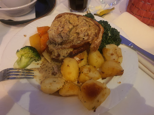 The Food. From the starters of mixed cold meats, to my personal choice of whitebait, squid and tiger prawns the portions of which could have fed two if not three (you cannot fault the generosity of the portions) all of which were delicious, to the mains of sea bass parcels (three of us), lamb shank, to the sirloin steak (two of us) the steak just fell apart in your mouth and was as good as fillet, so for food a definite 5 stars cooked to perfection
