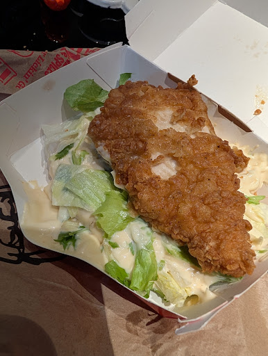 We live within a 3 mile radius of 2 other KFC but always visit this one because the service is always spot on and food cooked well and order accurate. What happened?! Ridiculous wait in the drive thru lane. The order kiosk looks like someone is packing up and moving home with all the boxes on show which gives an air of company which doesnât care about presentation. Gone is the person taking orders and instead we have a speaker. There is no way to check if your order has been recorded correctly. It was a Sat eve and there were only 3 very young men on shift. Needless to say the order was incorrect. An item missing. An item ordered but not recorded. The salt was damp in its wrappers. We are on the car park where we sat and watched one young man put in his air pods and mess with his phone as he cleaned the tables with a blue cloth and no spray. He merely wiped from one table to the next spreading whatever germs there were present to the next table. Sad to say we wonât...