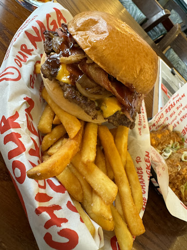 Read moreStopped by just after 12 on a Wednesday with a few colleagues for a food stop. The pub had only just opened but already a few patrons inside. Good selection on tap, I was a driver, so no comment on beer, unfortunately! Checked that the kitchen was open, which it was, and we all ordered different burgers. There was an option to double up on the patty for £3, so essentially a massive burger, fries, £10ish each. We went outside (lovely sunny day) and chose a bench, most had parasols with bench in good condition. Cutlery and condiments brought to table, and then shortly after all dishes together. Food was amazing, service was spot on, could have stayed for a few hours but had to hit the road. If in the area again I will 100% call by for...