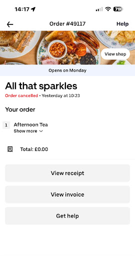 Read moreExtremely disappointed with this service. I placed an order for a Motherâs Day afternoon tea, only for it to be canceled just minutes before the scheduled delivery. No prior notice, no apology, not even a call or message to inform me. This last-minute cancellation completely ruined my plans for the day. Unreliable and unprofessionalâwould not recommend.