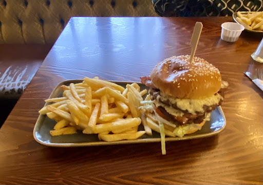Burger patties were hand made, succulent. Seasoned perfectly. Outstanding quality thick cut back bacon (I'm guessing no added water). Plenty of mature grated cheddar. Fresh lettuce, red onion and ripe tomatoes. The chilli sauce was also really, really tasty. Served on a sesame brioche. Fried were cooked to absolute perfection. I didn't leave a single crumb on the plate.
