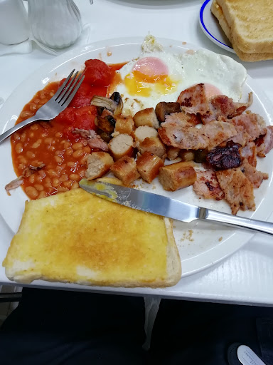 The staff are very welcoming and friendly and the service is fantastic the food was delicious and very competitively priced I and my wife both had the full breakfast the largest one that they do and we were pleasantly surprised to find that the shef knew how to cook fried eggs properly also the hash browns were crispy on the outside and fluffy inside the bacon was beautifully cooked as was the sausage and they use tinned tomatoes (which we prefer anyway) and the beans were just the right heat the toast was perfect too this is the first time my wife has ever managed to fully eat a breakfast in a café we plan on coming back here again and I heartily recommend that anyone hungry call...
