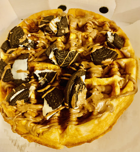 Ordered two waffles as shown in pictures, couldn’t order the others as it mandated you to purchase additional items which ALL cost extra! They all came with a small pot of ice cream, which cuts into the richness of the toppings. The waffle itself tasted great, and is a decent sized portion. Worth getting once in a...