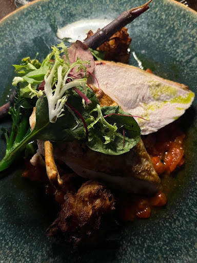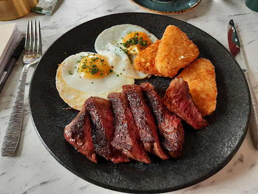 Read moreBooked 2.15pm on a Saturday. When we arrived the young waitress asked if we’d booked? Then pointed down into the restaurant and declared your table is over there. Ordered drinks and then waited around ten minutes for them. My partner ordered the Cauliflower and was delighted with it. I ordered the Ribeye. The steak was very ‘grisley’, about 25%, very small portion of chips ( about 1 inch long ‘chunky’ ) and possibly the smallest flat mushroom I have seen. Can’t understand why people ask how your food is when you first start and not when you have finished, considering about 25% of the steak (gristle) had been trimmed off and left on the plate! My partner commented to the staff about the gristle and we were met with the return comment of ‘ aw bless you’??My dessert (raspberry/choc parfait) didn’t appear to be the same as the patrons on the next table and instead of frozen raspberry pieces appeared to have ‘cereal clusters scattered around the plate?My partner asked for a ‘spiced’ Margherita and was told No and settled for glass of wine. The second request for one, off the menu was turned down as they ‘ were preparing for the evening sitting’! Our ‘finished’ plates sat in front of us for a good 10 mins before I requested them to be removed, even though there were staff resetting tables for the evening! The only reason that I have rated a 2 star is due to my partners food being delicious. One waiter, Luke, was chatty about the redevelopment and informative about the other menus and in fairness was the shining light in, for my meal, a very disappointing time. I really felt as though we were the ‘stragglers’ at the end of a service and slightly in the way as they prepared for the evening shift. The steak was poor, the amount of ‘triple’ cooked chips was poor. The cherry tomatoes were nice, although as a recommendation for a meal, to say the cherry tomatoes and the biscuit that came with my coffee were the best part of a meal is quite concerning. Nice surroundings, could possibly do with some ambient background music and little more space...