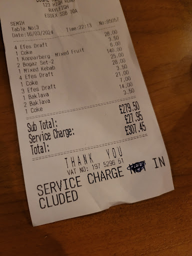 After booking a table for 11 on a Saturday night on the Monday before, being told that I need to pay £110 deposit and agreeing to come into the restaurant to pay this on the next day I was available, which was the Thursday, I was harrassed everyday by phone by the waiters asking me for the deposit, even though we'd agreed it would happen on Thursday. In the end I felt under so much pressure, I gave the restaurant my card details over the phone to pay the deposit early so that the phone calls would stop. However, they still phoned me on the Friday and the Saturday to check and confirm my booking - as if I'm not coming after spending £110 on the deposit! We attended the meal for a joint birthday party for myself and my fiancé and we're hoping for a really special evening with friends. I'm sad to say that Bogaz did not make sure this was the case. The attitude of the waiting staff was so appalling that three members of our party stayed behind at the end of the meal to complain. The waiters forgot to bring drinks over for several members of our party, and did not bring a starter over that my friend had ordered. When my friend very politely enquired as to where his starter was, the waiter said 'I called out the name of this dish and no one answered - it's your fault you don't have a starter.' before investigating and finding out the two people had ordered a dish and he'd only requested one from the kitchen. At this point he grudgingly offered to get him another one. The main course was just OK, we had been expecting a lot more in terms of portion sizes and quality of the food. Some of the dishes came without the rice they were advertised as coming with, and we were charged extra for these when they were requested. At Bogaz there are two 2 hour sittings - one at 6.30 and one at 8.45, and we knew we had to leave by 8.30. We had just finished our mains at 8.20 and the waiters came over and told us that time was getting on, but we still had time for desserts. We felt pressured to leave so we just asked for the bill and he told us again no its fine you have time. We insisted he bring the bill and he literally threw it down on the table in front of me. Not impressed. The put a 10% service charge on the bill which was not optional- after the service they provided we certainly would have thought twice about paying 10%! We divided the bill and each paid separately. The waiter took our money to make sure the bill was all settled and we were just waiting for that, about to leave when we asked our waiter to take a quick photo of our group. My friend had the camera held out, it would have taken two seconds to take a quick snap of us. However the waiter was incredibly rude, refused to take a picture, and said 'You need to leave. Other people need this table!'. We were shocked, and told him that we were waiting on the bill being settled anyway and that we only wanted a photo as a memento of our night and he once again literally threw menus down on the table and stormed off. One of our party ended up taking the picture, which meant that she couldn't be in it, and most of the party left, except my fiancé and I and one of our friends, who asked to see the manager. When we explained to him that we were very unhappy with the service we'd received he didn't care, and said that it was our fault because we'd stayed too long and they need the table back. Funny how it would have been okay for us to stay longer if we were having dessert at 8.20 - they might have been able to squeeze another £50 out of us! We would have been so much better off going to one of the other restaurants in Rayleigh!...