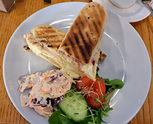 I popped into this tea room during the week I had to wait about 10mins before I could get a table so very busy good I thought it must be popular. Once seated I noticed that the chairs and carpet looked very dirty looked like the whoe place could do with a make over, after a wait of about 6mins the lady turned up with menu's and took our drinks order she was very friendly and polite then about 5mins later she came back and took our food order again very polite and efficient. We sat back enjoyed our tea and coffee. I was very surprised at how busy this little shop was and how quick and efficient the staff where but noticed how stressed they looked maybe need more staff to cater for the large numbers of people coming into the shop. Our food arrived and was OK. Not sure if I would rush back there as there are lots of cleaner looking shops in...