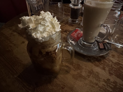 Read moreFound off the busy street, known locally as the high street, this charming little business has been going for some years. With a darkened wood atmosphere and booth type seating along with bigger tables for groups, the whole place gives an American type cozy feel. Staff are very welcoming and appear to be happy to be there, a somewhat rarity these days. Staff were quick to serve and main menus along with specials are presented. A good choice of items available and although a little more on the pricier side, you get what you pay for. Fresh, hot food arrives quickly. The bar offers good choices of hard liquor along with cocktails and the standard beers etc but you come to this place for the steak. A good fillet will see you paying around £40 with some more expensive T bone steak Available. I ordered well done and my fillet was perfect….no burnt crisping beef here! Food portions are good along with the pudding choices too. Overall a meal for 2 with the top end choices will set you back around £100-£115 for three courses….but it’s worth the money. The place was packed so testament to the service and good you get here. A well earnt 5...