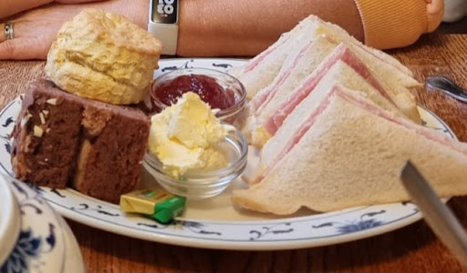 Read moreWe cannot understand the 5 star reviews here. There is nothing special about this tea house. Having had many afternoon teas around England, this was definitely our worst experience. The staff were grumpy and hardly welcoming, the full afternoon tea at £16 per person was so basic that it didn't deserve the title. No choice of tea, just a single pot for two of the cheapest house tea, a single sandwich from a choice of only 4 dull fillings - ours consisted of 2 slices of basic pre buttered bread with a slice of grizzly ham, a warm scone with jam and clotted cream (the one nice element), and a large slice of dry cake all literally crammed onto a single plate which was just dumped on our table. Absolutely no atmosphere, no refinement, no service, no presentation and no sense of having a special treat, as we've experienced everywhere else. To round it off, when we looked at the menu, buying the items individually would have been cheaper at less than £13! Plus we would have probably got seperate plates for each item. One star for the scone, zero for...
