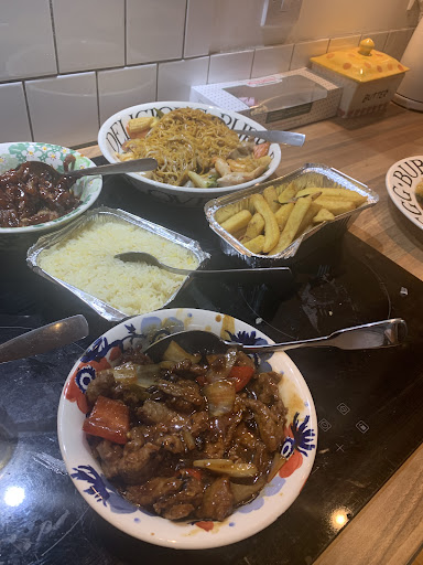 Nice family run business. Clean and hospitable, and at £12.50 each on the buffet menu, very affordable. We arrived at ten to eight and the last sitting was just leaving. We were seated with a drink and prawn crackers as we waited for the 8 o clock service. I noticed a couple of family parties with children had been at the earlier service, but the 8 o clock service was all adults so a bit quieter. I would say this restaurant is more suited to an affordable treat for a family than being somewhere to impress a new girlfriend with. The service is relaxed but friendly and polite, I felt they genuinely cares that we enjoyed our visit. We were served at the table with duck pancakes, prawn toast, spring rolls and those little triangles, then sticky ribs, then satay chicken, then salt and pepper chicken.... That was just the starter! The main meal is self service buffet from a selection of rice's, noodles and meats in sauce plus chips. Dessert is fruit salad, custard, bought cakes, muffins, waffles, cookies etc. I had a latte to drink and was pleasantly surprised at it being...