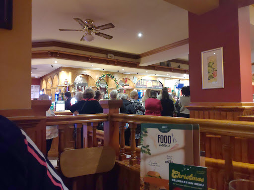 Read moreOvercharged my wife by £10, it wasn't until we spoke to the manager (I think) that it was sorted. Server put the wrong item in, even though my wife queried at the time. Server wouldn't listen and said it was right. Table for eight and we all are at different times. Steak was nearly raw even though I asked it to be well done, cheesy garlic bread wasnt cooked, the chicken was slimy on one of the kids meals and the server didn't ask who each meal was for and just left it on the table. Meals came out 1 or 2 meals at a time, missing items on certain meals as well until we informed the cook. Cook brought a kids meal out and dropped the butter off onto her shoe, she bought some more out. Cook then brought another meal out and was in that much of a rush that she near enough dropped the plate on the table and the butter flew off and landed on my leg. My latte was that strong I couldn't drink it, when I asked for 3 more sugars I actually got 2 and the waitress disappeared as quick as she came, so I wasn't able to ask for another one. Food was actually ok except for the above problems. Would have preferred to sit away from the children's area, even though we had kids with us. Under 5 play area had older kids playing in it and at one point we thought the play house was going to tip over with the older kids sat on...