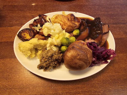 Read moreIt was really bad… really really bad. Had to que up for over half an hour to get the roast.. the potatoes tasted old like re heated re cooked re fried whatever just like licking a church floor. Got a scrap of a Yorkshire. No gravy to go with gammon. Poor guy was basically alone doing the carvery so it took ages as you had kids serving themselves and fighting with their mum about what veg they’re not having. Food really was bad I’m so sorry but I’d love this place to be better because it’s on the doorstep! We didn’t book and that was fine but no seating so had to sit outside. No knife and fork once we got to the table. Food was cold by the time we had knife and fork. I couldn’t cut the meat I gave up and didn’t eat much at all. Cauliflower cheese was just cauliflower with cheese thrown at it and it tasted of metal. Worst meal I’ve ever had. I felt like I went out and some money fell out my pocket or someone robbed me. Really sad we had one day off this week and we went here.I’m even sadder to write such a review. Also the self service of drinks and keeping a table and queuing for food doesn’t work when there’s two of you, you have to que with your drinks because you have to pay for the carvery ticket and show it at...