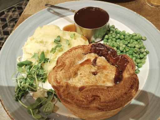 Read moreOften used for after funeral wakes. So again I find myself with family and friends here. The public area is quite large with an upper level and cornered off spaces. The staff at my last visit seemed casual and a little busy. The staff are polite and helpful. I didn't find service to be what I would call chatty but more I'll serve you and who's next. The upper level that we had was put aside for this funeral had a bucket and plastic container catching discoloured water from what looked like a ceiling ready to collapse. I would like to think it is now repaired. The sloping car park is large with quite a lot of cars parked, I wonder if they are staying here or left park and ride? The food was okay ( to be fair it was a buffet paid for and not the normal menu), help yourself to hot water and make your own tea or coffee for the funeral mourners. The better choice is to go to the bar and choose the machine made hot drinks. A good selection of drinks at the bar, I liked the Abbot beer. I did notice mid day diners maybe ladies or do lunch types, quite happy souls as well. We mingled with the mourners minding not to trip over the water bucket and container. The pub is clean and the toilets are fresh, always a good sign. Bus stops are close by the busses are frequent so handy. I would say the Nottingham Night has lost some of its earlier days fame but still holds onto that a bit. Good place to take the family for lunch and an early evening meal. Older parents and grandparents would be a good choice for a get together. Kids are welcome and wouldn't be cramped in. Might be a good place to have a secret meet up, you know for a fling in a cosy corner. Well worth a "let's go out somewhere not too posh" and enjoy...