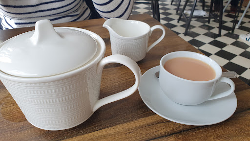 Read moreThis is a fabulous little cafe! The ambiance is sort of old school meets Great British Bake Off and the food is homemade, simple, and delicious. I had a ham and cheese toastie and a piece of the Victoria sponge. The toastie was made with proper off-the-bone ham (not the reconstituted lunch meat), and was generous with the cheese. It came with some crisps and a salad. The cake was amazing. I had a hard time choosing which one I was going to have because there is a wide array displayed across the counter and in a display case. I think I'll have to go back for afternoon tea one day to sample some of the others. There is no kids menu per se, but they were very accommodating with my 1 year old. There was a high chair available, and when we ordered him his own cheese toastie, we were offered pom bears for him instead of crisps. He was...