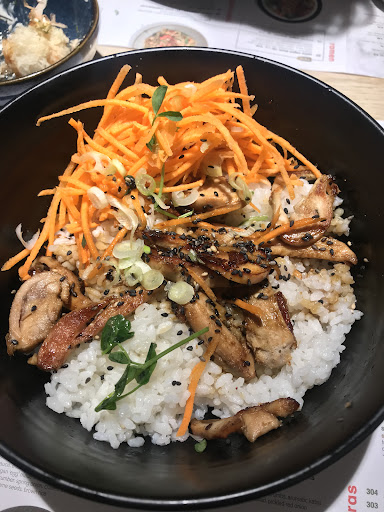 Teriyaki chicken Donburi: Ridiculous! The bowl is completely covered by raw and unseasoned carrot and bean spouts. Removing the vegetables, I can only see some poor little chicken pieces⦠they are hard and very very dried. From my experience of having Teriyaki in Japan & Asian and an other part of the world, if you Teriyaki chicken, you will get soft and juicy chicken thigh with very crisp skin! Look at what I got the pictures and you will under how disappointed I was.š