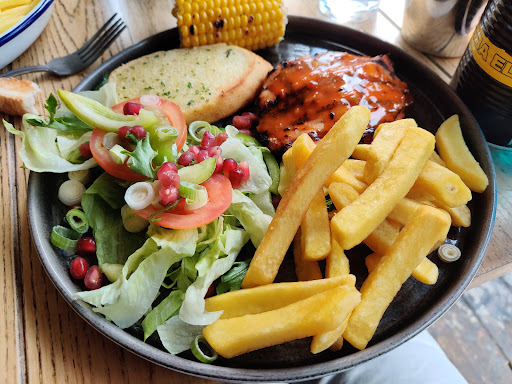 Food was okay, a bit fiddly with the hipster serving style trying to cut the pizza on a thin wooden 'pizza cooking tray' thing, and the chicken meal was a bit stacked up in a bowl instead of spread out more on a plate.