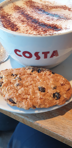 Read moreThis biggish new Costa has adjacent free parking and seven or eight tables outside that catch the sun for most of the day if its shining. It has two large cubicle toilets and it's all kitted out in the latest franchise style. It's long and L-shaped with windows that run the length of the unit. It's still pretty quiet and enjoying that new-clean feel. Aga and Alex work the counter and they're great ladies. I know Aga from her stint at one of the Costa's down on the harbour in Salford Quays. The wifi is good and the tables don't wobble (yet). I use it for reading and writing. It's great to spend...