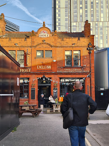 Read moreFrom the outside: a gorgeous building, Britain's finest architecture on timeless display. Inside: comfy, cosy, little features (fireplace; mantelpiece; etc.). Decent pint. But: when I visited this pub on February 5, 2015, at around 17:15, the barmaid was having a smoke outside (back yard), had to be called inside by an observant punter to take our orders. I probably wouldn't have mentioned it, if she hadn't been so keen on putting on the loudest and most awful music ever to be heard in any British pub! Clearly, her two friends at the bar didn't mind, but my companion and I were clearly annoyed, and we left after our first and only pint. If she had been more caring, we would have stayed for another round or three. The bar trade requires a modicum of sensitivity - a virtue clearly absent that day from the Eagle Inn. Rest assured, my deaf waitress, that this little episode is going to be exploited as recklessly as you were putting on your "music" in my next story, CURSED KERSAL, now part of my extended novel MANCHESTER X. I might give you a 2nd chance...
