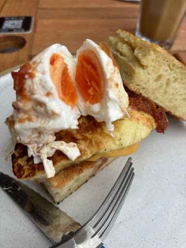 Unfortunately I was pretty let down by the food. I ordered the Leo Stack, the menu just said "egg" and I guess I should've asked how the egg was served because I think fried or scrambled in a ring would make more sense here. Either way, if you're not going to poach a traditional runny/soft poached egg it should probably be mentioned somewhere. The egg yolk was way overcooked, like a soft boiled egg. When I asked the server, they gladly offered to replace it with a runny one, and quickly brought it out for me, but unfortunately that one was undercooked and the whites were snotty. Yuck. I saw another table replace an egg too so I don't think this was a one-off.