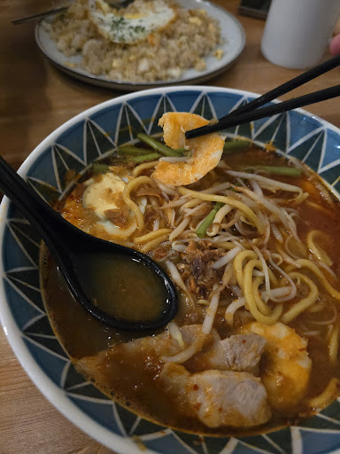 The laksa! Noodles and everything was well cooked, despite looking like a lot of prawns in there, I think theyâve been thinly sliced so itâs not actually that many. I find the curry soup quite bland and I couldnât find the âkickâ from a typical Malaysian curry laksa would have. I would say it was VERY mild, it wasnât even a âstandardâ spicy. Portion size was okay. You can get better tasting and bigger portion for similar price in Chinatown.