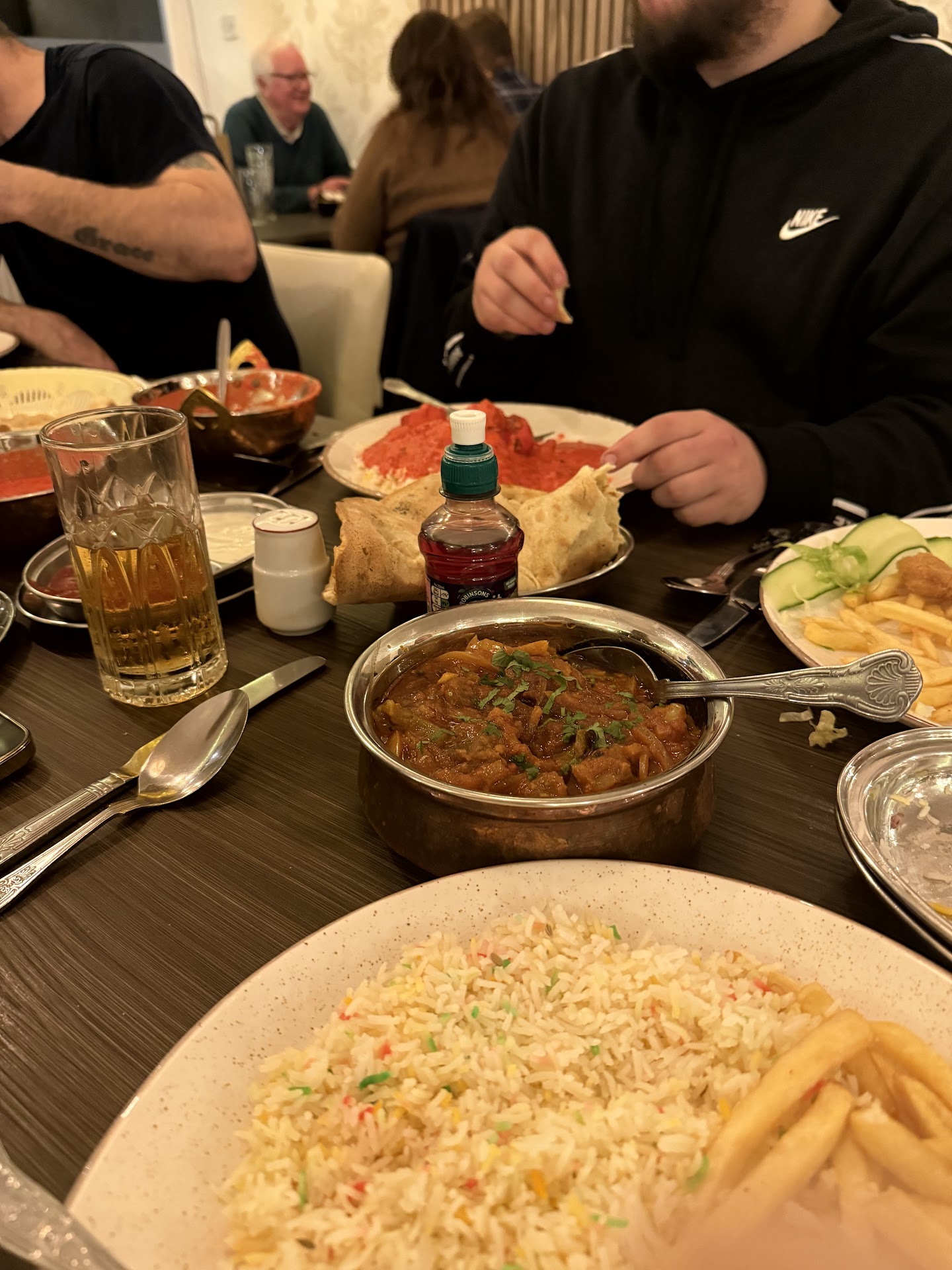 Read moreReally gutted the food just wasn't what we expected from the reviews. Not sure if this is a takeaway issue? Maybe the food is fresher in the restaurant? The curry I ordered was so greasy, you could see the oil pooling and the texture was slippery and really unpleasant. The layer of spice and herbs just wasn't there like you would expect from authentic Indian cuisine. Never a fan of chips but they were awful, wrinkly, no potato content, greasy and cold. The chicken was 50/50, some breast meat but some thigh meat mixed in which I just wouldn't expect in the dish I ordered. The lamb was also inconsistent, some pieces tender but others chewy. Credit where it's due the seekh were lovely and soft and very tasty. The tikka masala was the strangest colour I've ever seen, not sure why? If ordering takeaway I would stick to the kebab in naan, chicken and seekh not lamb. Sadly the free onion bhajis were so dry, maybe make them smaller and serve 4 instead of 2 large dry ones. On the plus side delivery was on point and the driver was...