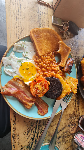 A lovely little coffee shop. There is some outside seating too! Called in on the 'off chance ' that there might be a table for two, available? On entering there was a sign that asked us to ' wait to be seated ' . Within seconds a cheerful and friendly staff member, welcomed us into the Coffee shop. She asked for how many people ( two) and showed us to a table. Menus offered and my husband asked if the Breakfast was still available? It was! Apparently, anything on the Menu is available ALL Day ๐. The friendly Staff member returned to the table, apologising for the wait ( 5 minutes? ) and then took our order! We ordered the 'Bacon/ Sausage toasted Sandwich and the ' Club' sandwich. Both promptly arrived and with one bite we both decided that our Sandwiches were the best we'd ever tasted. The ' Coffee House & Kitchen ' had a steady flow of Customers arriving and leaving and no wonder. The food is delicious. Cooked and prepared quickly, unlike some other places we've been to where the waiting time was 20 minutes and the Food was mediocre! All in all a very positive visit. Staff friendly and calm considering it was consistently busy. I'd give 9/10 . Do call in as I'm sure you won't be disappointed. What 'The Coffee shop & Kitchen ' seemed to be like a ' Tardis'!' . Small on the outside but very roomy on the inside ( I reckon it can comfortably seat 25 Patrons?). We will return at some...