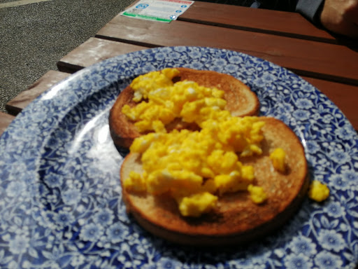 I ordered scrambled eggs on toast and upon receiving them I was disappointed to receive luke warm scrambled eggs that were hards and crunchy to touch, with slight discoloration. They certainly weren't fresh.