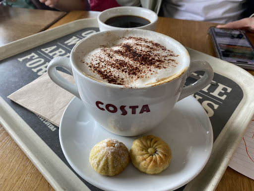 Read moreLove Costa's flat white and the taste didn't disappoint! However, the guy who made it was totally oblivious to our presence, preoccupied maybe, just had a rush on who knows ... nevertheless didn't utter a word just shoved the coffee's down without its distinctive fern trademark, that was just a blur. His manners, attitude to work and social skills left much to be desired!!! The shop wasnt busy when we were there but he obviously didnt want to be there let alone live up to Costas usually impressive reputation!! The place was messy too tables and floors were unattended too..making the whole experience disappointing! This time should have gone to Gregg's next door who are...