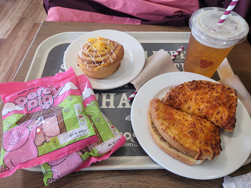 Read moreHave visited before. Popped here today for a bite to eat and a pit stop. The lady who served me (Kate) was very friendly and helpful. I love the fact that percy pigs are now available to buy! The spicy steak sandwich and peach tea were lovely. However was a bit disappointed with the cinnamon bun as it was ridiculously dry on the inside. The atmosphere left a bit to desire as there was a mother letting her kids make a lot of noise - I don't want to be one of those people - but it was excessive and she was too busy talking on the phone to be paying any attention. It appeared to be putting off...