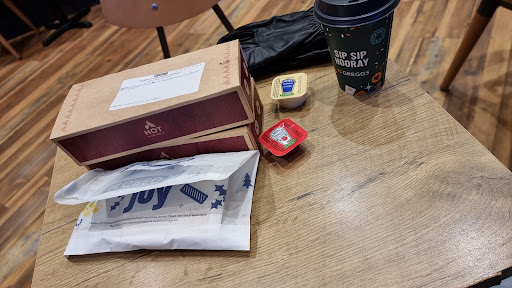 It's nice, does what Gregg's is supposed to do. I have had my fair bit of breakfasts from this Greggs. Definitely order on the app if you're going early (7-8 am) in the morning, the queues are massive!