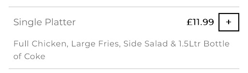 Visited recently and ordered two meals costing almost £15. I’m saddened to say the only thing I enjoyed was the garlic mayo and chilli sauce.