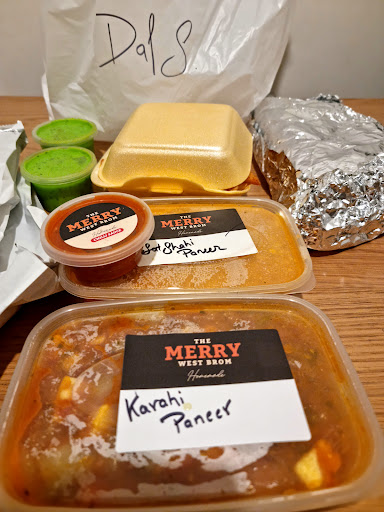 The food - we went for the following: 2x lollipop 1x large boneless mixed grill 1x merry grill 2x chilli chips 2x masala chips 2x chilli prawns 1x chilli cheese naan 1x garlic naan 1x keema naan 1x keema cheese naan 12 poppadoms Vindaloo sauce 6 of us just about managed to finish it!