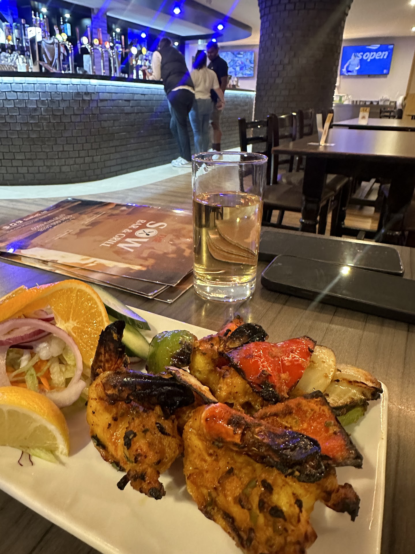 For food, the main event was The Sow Special Family Grill. It had 3 different types of Chicken Tikka (standard, methi, and garlic), standard Chicken Wings, Southern Fried Wings, Sheesh Kebab, Lamb Chops, Battered Prawn, and Fish Pakora. Along with this, we ordered Shahi Paneer as our Curry, Plain Naan, and Chilli Battered Chips.