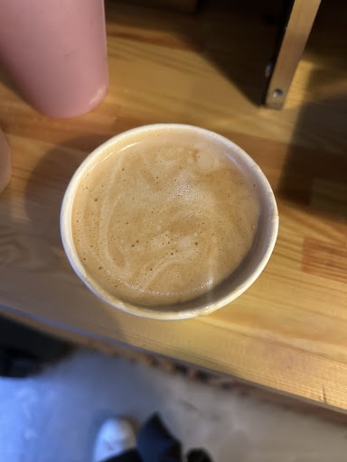 Asked for a flat white with a sugar. Was told in no uncertain terms by the passive aggressive brunette serving me that the sugar was by the machine and I should add it myself (there are multitude of reasons why you should add the sugar directly to the espresso and you would do well to educate yourself) . The FW was made in ecord time by the cap wearing Barrista - you can see from the picture why. Luke warm milk on a freezing morning in Glasgow unceremoniously dumped in a cup of coffee with no texture, body, head, craft or indeed love.