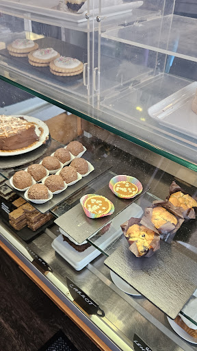 My wife, baby daughter and I stopped off here on our way down south. It was busy but we managed to get a table. They supplied a high chair for the babes. The staff were friendly and helpful throughout. My daughter loved the business with so much to look at. The staff kindly het up my daughter’s meal which we made her. They have a decent menu with your staples like filled rolls, baguettes, baked potatoes, soup and ofcourse your full breakfast etc. I opted for the soup and a baked potato with coronation chicken and sun dried tomatoes. I love how you can have many different fillings and mix and match. My wife got a full breakfast and each of us got a hot chocolate. My jacket potato was pretty good. Severed hot and the sun-dried tomatoes and the chicken flavours worked well together. I personally prefer to have my potato skin crispier but to someone else this may be perfect. The soup was nice also. The breakfast wasn’t anything particularly special but still enjoyed. The hot chocolates were luxurious and very generously topped with cream and fudge pieces. This went down a treat. We took away a couple of sweet bakes both of which were yummy. Overall a solid cafe to stop off at if you are passing...