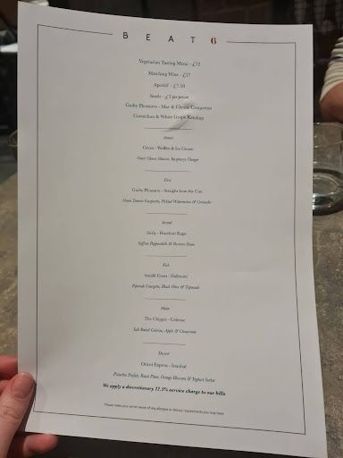 Read moreUnfortunately our experience at Beat6 on this occasion was really disappointing. We booked a table for 6 people to enjoy The Sunday Roast 3 Course menu at £32 per head. The staff are very welcoming and work well however they were so let down by the quality of the food. Firstly, our starters were so poor, very badly presented and tasted like a piece of dated, toasted bread with a plain topping on a plate with no garnish. Given the restaurant supports such a good cause we decided to await our main meals, hoping they would be better. Well they were without doubt the worst plated roast dinner we have tasted in many years from a supposedly quality restaurant. Our beef (both rare and well done) was impossible to cut and when we did manage to cut a piece, it was impossible to chew. The Yorkshire puddings were brick hard! We did complain and to be fair, the staff organised fresh mains apart from one of our guests who was so put off by his initial dish he said he couldn’t take another plate. When our second attempt at the main arrived it was just as bad, meat impossible to cut and eat, hard yorkies. We apologies to our guests we had invited to this restaurant and complained again. We declined any dessert and paid for our drinks, we also left the waiting staff a tip and paid the donation to the charity. We will now never return to Beat 6 and can only suggest a new chef and please take a look at how good Roastit Bubbly Jocks do it. Their Sunday Roast is simple superb. Such a shame we want to support this local restaurant but...