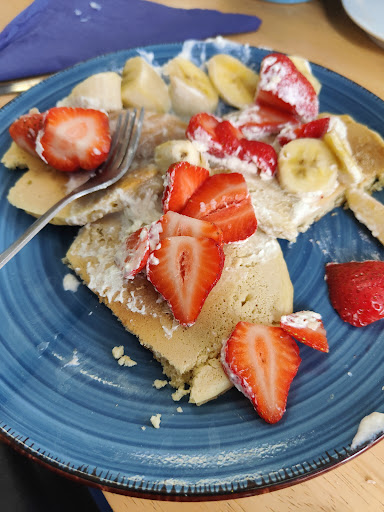 Stopped here for a soft drink, ended up sitting outside in the good weather, and stayed for a meal. Really nice staff. Good size menu. We arrived late in the day, so not everything was available, but what we did have was perfect for us. The hand cut chips were excellent. Finished off with a couple of cones. People aren't kidding about the quality of the ice-cream; it was up there with the very best classic Italian recipe. Excellent value for money. Will definitely be back next time we are passing. Classic cafe dining...