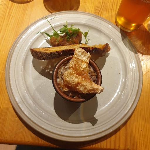 This was walking distance from our air bnb (Brownhill house which was perfect and highly recommended) but you do need a tourch for walking back. Total darkness and great for seeing the milky way. First night we had Burgers with extra bacon and blue cheese. They forgot the bacon but this was quickly rectified and an immediate offer for our 2 drinks to be on the house was given which was very good of them. Good burgers they are well done but nice flavours. We had Sticky toffee pudding for dessert very light.. not the best I've had but did the job. The next evening we tried the starter of Potted pork with crackling and apple compote. Plenty of meat and bread and good. For mains Ox cheek with mash. We asked if it came with veg to which we were advised not.. so ordered sides of green veg and cauliflower cheese. When the plate arrived it did have tenderstem brocoli so it was a bit of a waste of money ordering the veg side at £5 a pop and not needed. Great cauliflower cheese though. The ox cheek was great tender full of flavour and plenty of delicious sauce to go with it. Finished with a whisky Edradour which was rather good. Nice atmosphere...