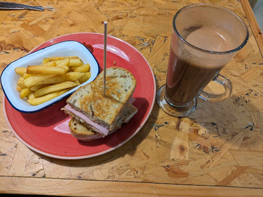 The was one vegetarian/vegan option chickpea chilli and the soup was roasted red pepper. There was no sandwich option other than just not getting the meat. I has eggs Benedict without the ham and I got exactly what I asked for. It was delicious I can't fault the quality if the food. My husband had Bob's famous fry and thoroughly enjoyed it. My chai latte was beautiful smooth and creamy. Unfortunately the whole experience was let down by the noise. It wasn't pleasant dining experience, nice music but too load mixed with chatter from other customers. It wasn't a place I would choose to go on my own for coffee and cake with a book or my paper or for lunch. That and the lack of options for other dietary requirements left me disappointed. I admit can ask to not get meat on my meal but I did say I was vegetarian and wasn't directed to any options and that's a real shame as I don't notice the soup until I had paid. Overall huge menu delicious looking food but with such limited option I'll probably choose somewhere less noisy where I can have a quiet conversation over...
