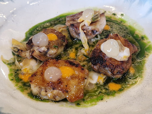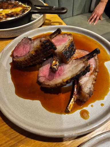 Read moreHad dinner on a Friday night and it was one of the best meals I've had in a long time. We tried the sourdough crouton appetiser with olive and anchovie, chicken wings and clams, the beetroot and blackberry and the special which was a 45 day aged sirloin steak with cafe de paris butter and the potatoes and cabbage sides. The food was incredible, every single dish was 10/10 but the steak was the star it was pretty special and big enough for two people to share. We also tried the strawberry sorbet with creme freche and the and the whisky coffee liqueurs. Service was excellent and we sat at the counter and you're able to watch the chefs do their thing right in front of you. It's not a gimmick like a lot of restaurants were the just assemble the food in front of you that's been cooked out of sight, you really get a front row seat in to workings of a high end kitchen and it was cool to watch. Watching the steak getting seared and cooked on the charcoal grill was a nice touch. There's a good selection of drinks and wine but the wine was very expensive but the price of the food is fair when you see the skill involved and the quality of...