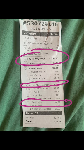 Read moreCustomer service was appalling, Tried to order via the machines as the advised they were serving no one at the desk, the machines would not take the voucher codes we had so we were abruptly told to go down and sort it at the desk to which we waitied around 10 minutes for one of the staff to notice and acknowledge us then a further 10 minutes for someone to come assist to to be abruptly told by her in an incredibley rude manner that the machines will take that code and to go away, which we replied they weren't taking it, in which the manager at the time argued with us that we were doing something wrong or typing the code wrong, so it then actually took us another 10/15 minutes for her to actually process the order. Finally our orders came and we had asked for sauce one type wasn't in stock so I asked which other types there was to be rudely told ' I mean I shouldn't have even given you's one sauce I am meant to charge for those' Overall about 4 members of the team including the manager we dealt with were incredibly rude...